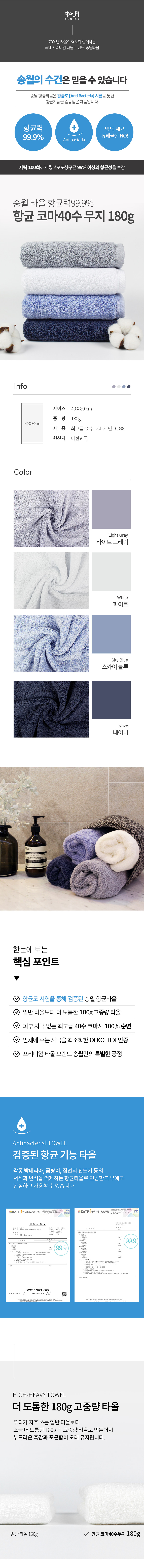 송월타올 항균 코마40수무지40